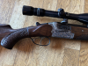 Merkel BBF in einem sehr guten und gepflegtem Zustand, Kal. 5,6 X 52R und 20 X 76, sehr schöne Gravuren rechts und links, so wie auch am Schaft, Kahles Zielfernrohr variabel, 2 - 9 X 42, Linsen sind klar, Einhakmontage, Das filigrane Glas passt sehr gut auf die Waffe, Büchse und Montage noch sehr stramm im Schloss, das Schloss ist dicht!