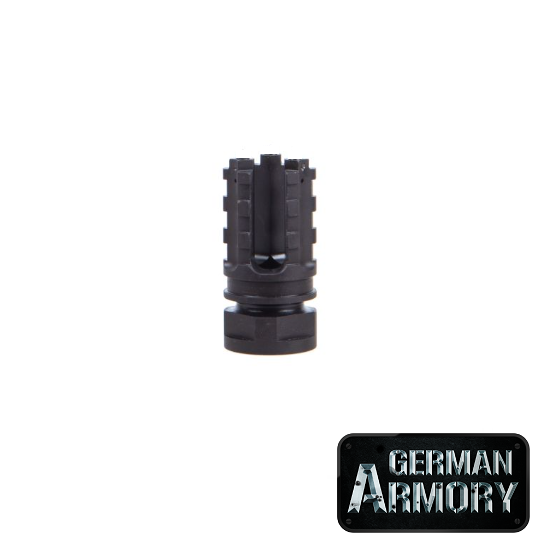 Dieser Mündungsfeuerdämpfer hat rundum Öffnungen. Die Verbrennungsgase werden zu allen Seiten abgeleitet und verringern so spürbar den Hoch- und Rückschlag. Hoch fester Stahl, einbrennlackiert. 42mm Länge, 22mm breit.