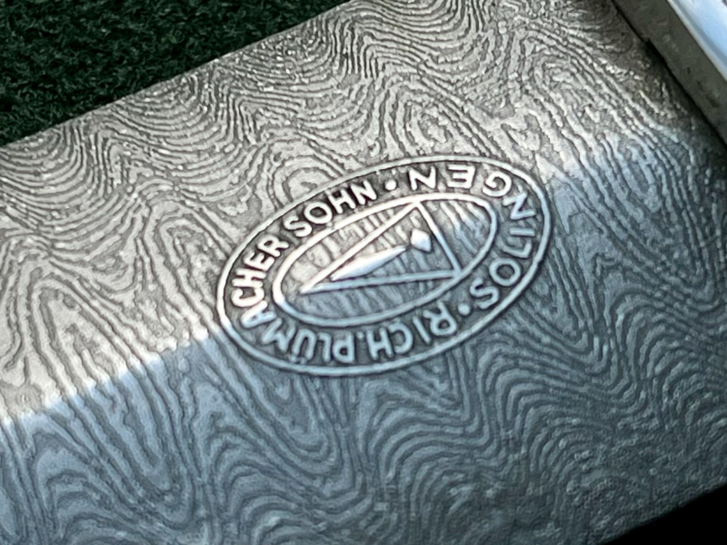 Seltenes "Plümacher" Stück in Ätzdamast. Ausführung ähnlich dem Muster des originalen und nur verliehenen Ehrendolch der SS diese in Maidenhair-Damast oder seltener auch in blanker Ausführung der Klinge. Devise und Widmung sowie Hersteller feinst und erhaben ausgeführt in wirklich hervorragender Qualität. Dolch Leider ohne Scheide. Griffstück Ebenholz, nicht schwarz lackiert mit deutlichen Tragespuren. Adler und Pastille sauber eingelegt. Beschläge Nickel, Kopfschraube Eisen vernickelt. Widmung " H.Himmler Reichsführer SS" Diese hat es so auch auf Ehrendegen der SS gegeben.