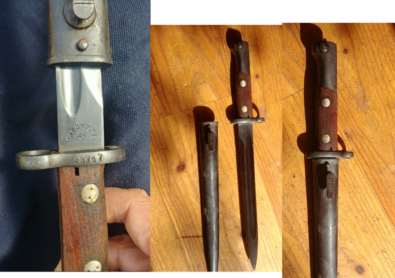 Bajonett selbst sehr gut erhalten. Mit Metallscheide.