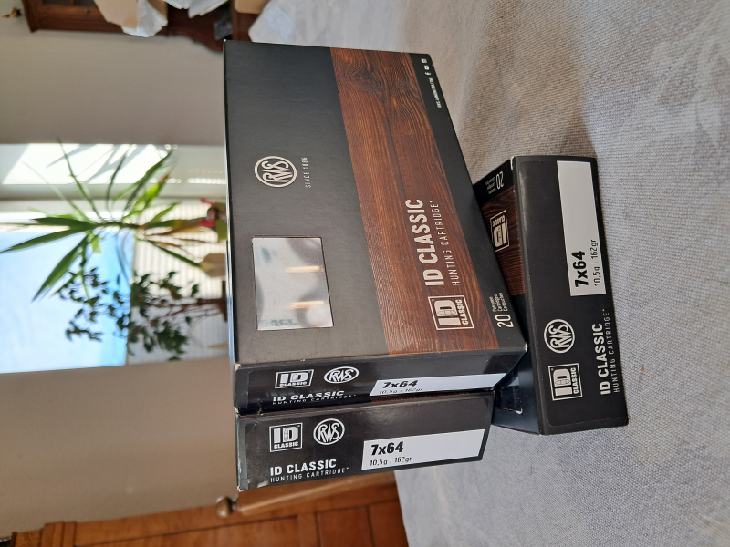 Versteigert werden 3 ungeöffnete Schachteln RWS 7X64 ID CLASSIC in 10,5g (162gr).