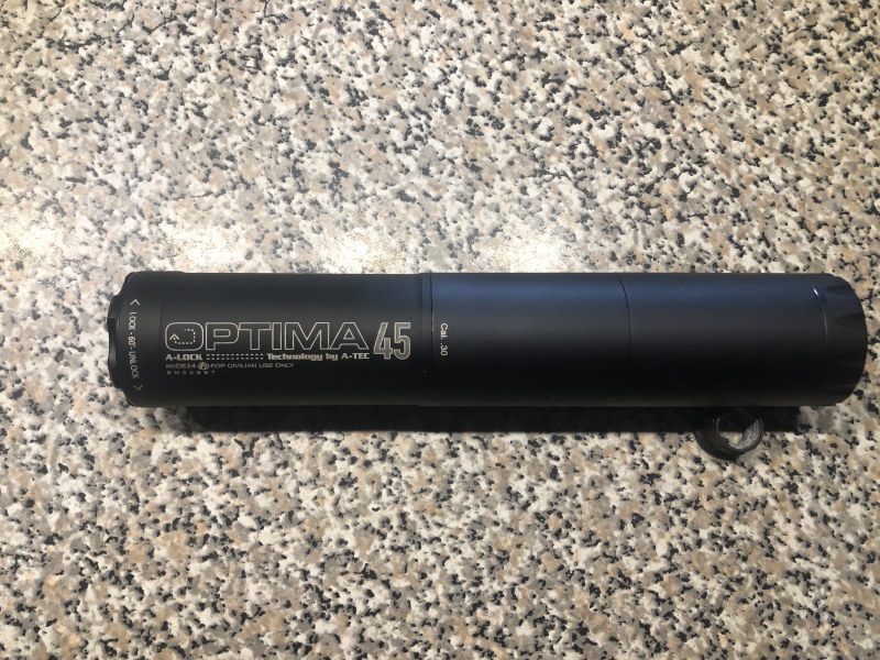 Angeboten wird ein A-tec Optima 45 Schalldämpfer in .30 Kaliber.