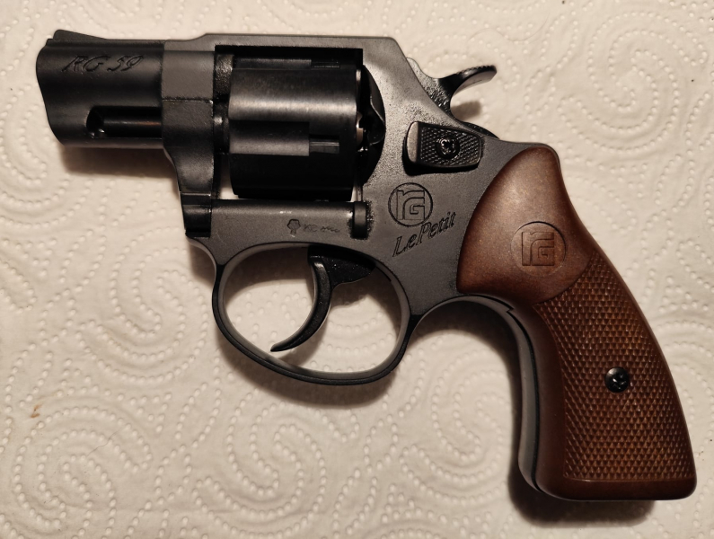 Wegen der erstklassigen Verarbeitung beliebte Sammlerwaffe: 9mm Revolver Röhm RG 59 "Le Petit". Wichtigste Funktionsteile aus Stahl. Er besitzt eine Trommelsperre, einen zentralen Patronenausstoßer und einen Stahlstoßboden. Technische Daten: Abzug: DA/SA, Trommelkapazität: 5 Patronen, Sicherung: Fallsicherung, Länge: 155 mm, Gewicht: 462 g. In Originalkarton und mit Abschussbecher. Topzustand, siehe Bilder. Beststeller in kompakter Bauweise, mit winzigsten Trommelspalt; Neupreis des schlechteren Nachfolgemodells (viel größer Trommelspalt) bei Kieferle 189,00 Euro, bei Frankonia im Angebot 169,99.