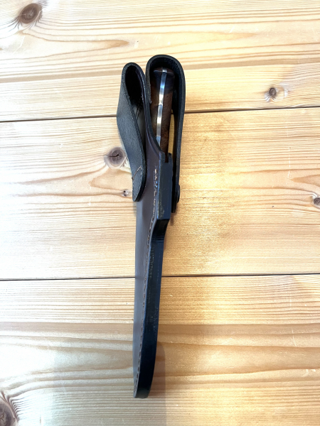 Lederscheide mit geprägtem Logo.