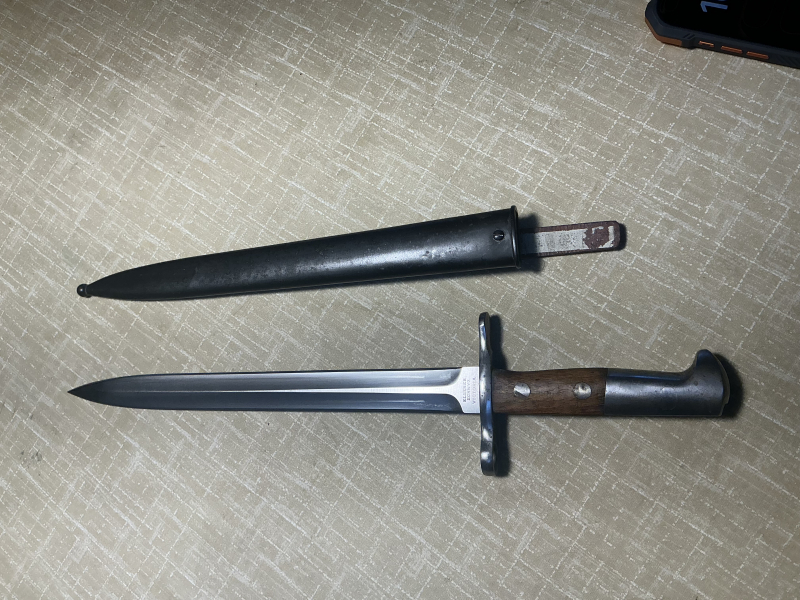 Verkaufe mein Bajonett für den Schweizer Karabiner K31. Das Bajonett hat Gebrauchsspuren siehe Bilder.