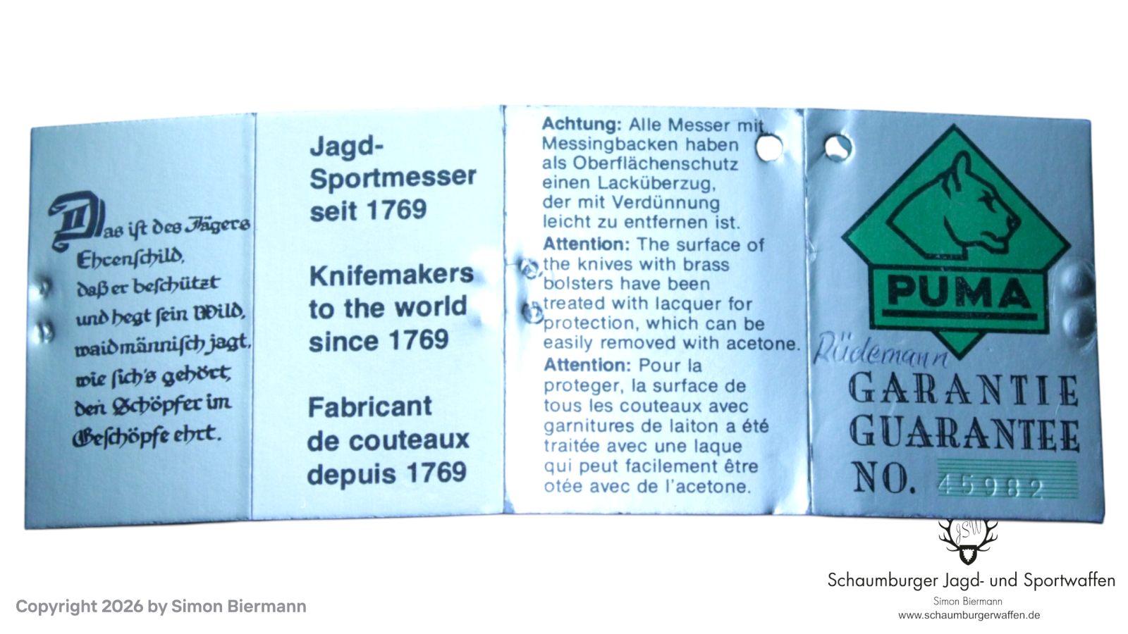 Messer, Jagdmesser, PUMA, RÜDEMANN, 113584, 45982, sehr g. bis prakt. neuw. Zustand.