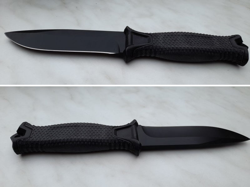 Ein schönes, großes Messer, gerade so innerhalb der rechtlich erlaubten Länge fürs Tragen in der Öffentlichkeit. Es hat ordentlich Masse. Ich habe es mir als Arbeits- und EDC-Messer besorgt. Der Griff ist nahezu perfekt. Extrem rutschfest, und liegt sehr gut in der Hand. Eine Bohrung für eine Fangschnur ist vorhanden. Das Messer rastet in der Scheide ein und hält dadurch bombenfest, kein Wackeln, kein Rutschen, auch wenn man es kopfüber hält und egal wie sehr man daran rüttelt. Die Scheide lässt sich an Rucksäcken oder sonstigen Gegenständen mit MOLLE-System befestigen, oder vom Gürtel hängen. Hier ist dann allerdings auch der Grund, warum ich es verkaufe: Es lässt sich nicht kopfüber am Gürtel befestigen, so wie ich es gerne mag. Die flexible Halterung aus Stoff lässt es doch bloß wieder runterbaumeln.