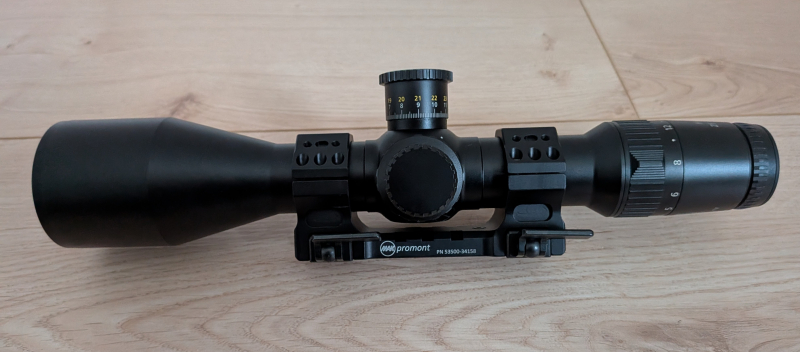 Hensoldt 4-16x56 Zielfernrohr mit beleuchtetem Absehen, verstellbaren Türmen, Leuchtabsehen und 34mm Mittelrohrdurchmesser inkl. MAK PROMONT Montage. Es handelt sich um ein militärisches Zielfernrohr höchster Qualität. Es gibt nichts Besseres!