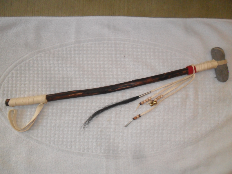 Biete eine Replika einer kleinen Steinkeule der Plainsvölker an. Diese Keule hat eine Gesamtlänge von 57 cm, der Steinkopf ist 9,5 cm lang, der Schaft aus Holz.(siehe Bild )