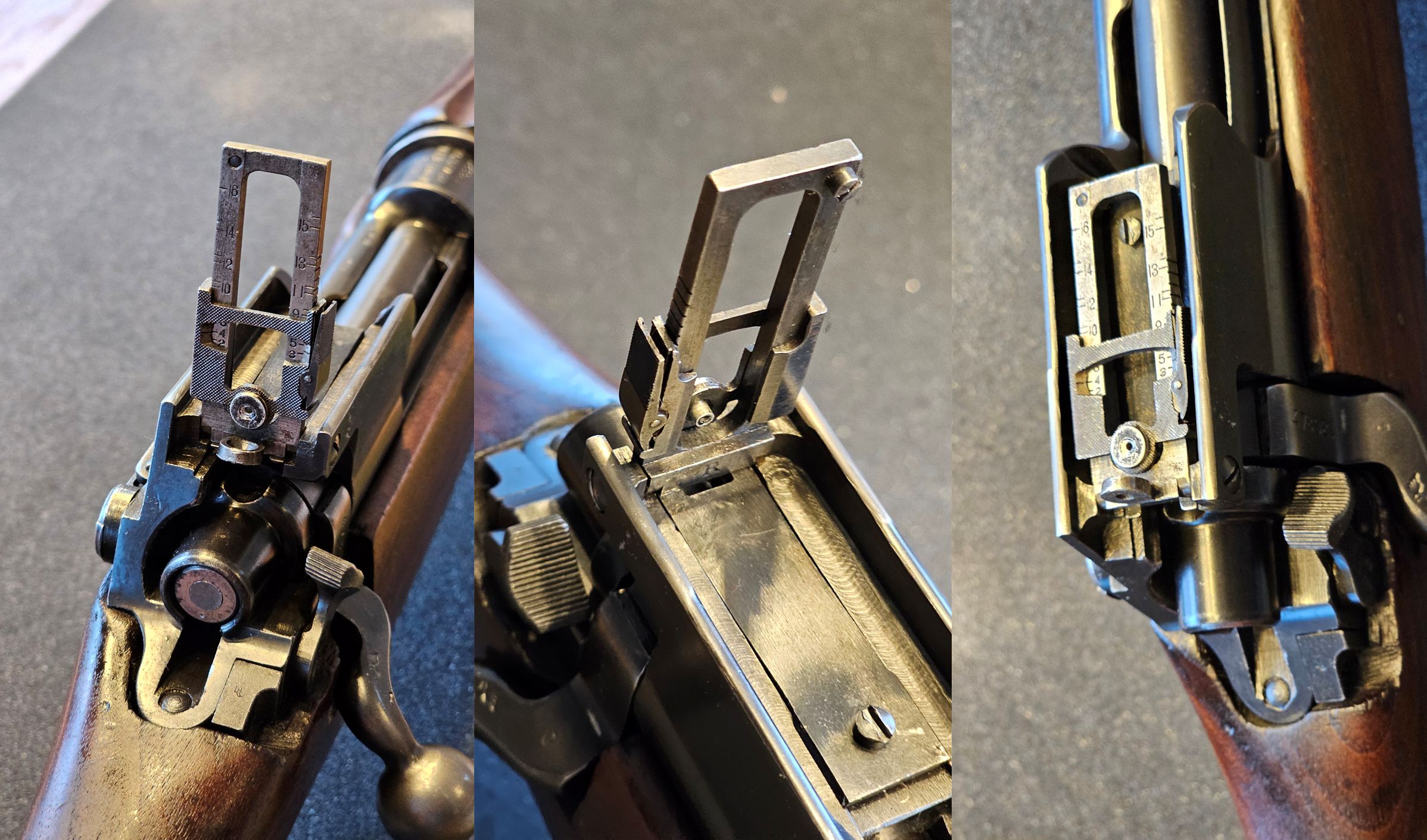 • Visierung: Klassisches Aperturvisier (Lochvisier). Für das sportliche Schießen wurde im Schiebevisier eine entnehmbare Reduzierhülse verbaut, die das Zielbild schärft. Die Hülse lässt sich entfernen, um den 100%igen Originalzustand wiederherzustellen.