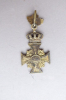 Verkaufe unbekannten Orden mit Eichenlaub 1910. Überkröntes Messingkreuz vergoldet. Königskrone an Scharnier beweglich. Darüber Eichenlaub mit Aufhängungsöse. Ovale Mittelkartusche vorne mit 1910/11; Rückseite mit "Willi Strey". Kreuz 36 mm breit. Gesamthöhe 73 mm. Zustand siehe Fotos; bei Fragen vor Auktionsende: bitte Kontaktaufnahme! Privatverkauf: keine Garantie, Keine Rücknahme.