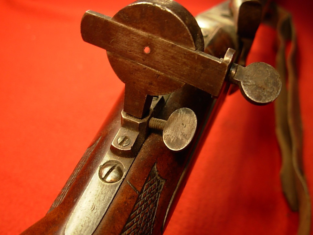 Originales Schützengewehr 1845 – Stecher und Diopter – gezogener Lauf – Original Riemen -Gewicht ca. 5kg – Lauf mit Marke –