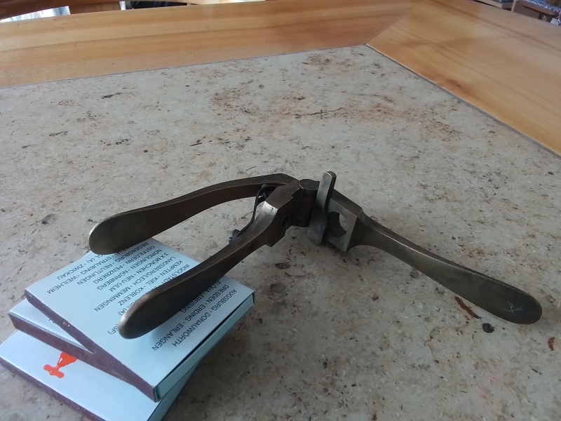 Zünderzange für og. Kaliber aus Messing,kann auch für org. 38er Colt Berdanhülsen verwendet werden.mit Herstellerkennzeichnung an den Griffen. Funktioneller Zustand. Leichte Gebrauchsspuren. Rest siehe Bilder. verkaufsbedingungen siehe iD MY GUN.