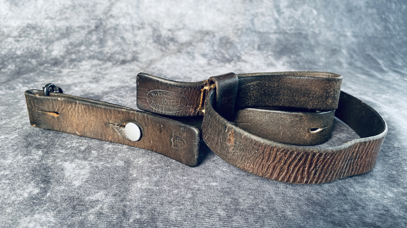 Zur Versteigerung kommt ein Original Gewehrriemen für die Schweizer Karabiner K11 und K31. Das Leder ist weich. Alle Nähte sind fest. Die Stempelungen sind deutlich erkennbar.