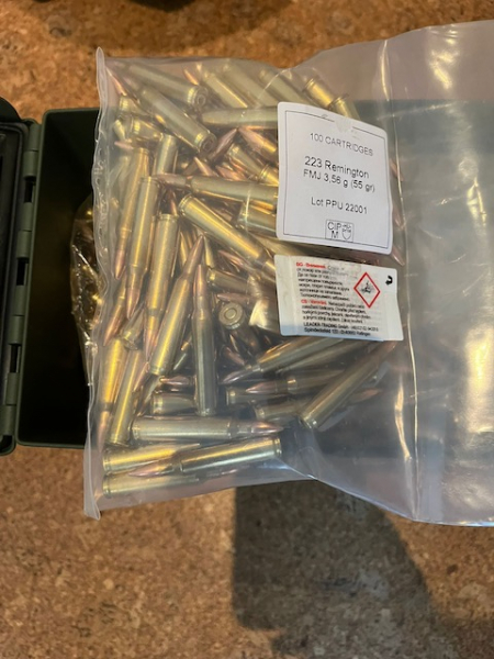 Verkaufe mit dieser Auktion Munition im Kaliber .223 Rem der Marke PPU mit 55gr FMJ BT Geschossen.