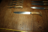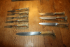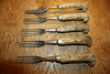 Ihr bietet hier auf Jagdliches Besteck 5 Gabeln, 3 normale Messer und ein großes Messer.