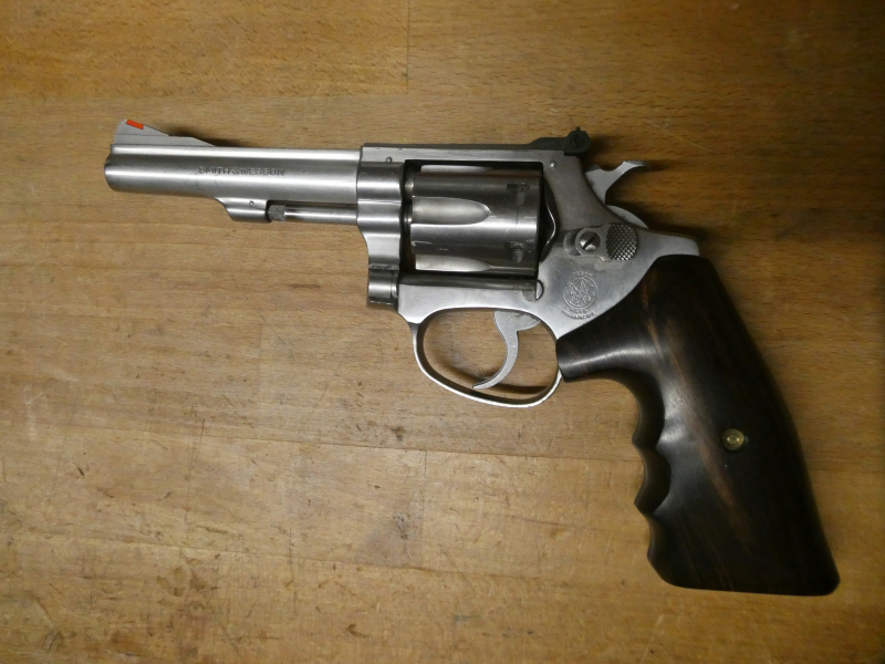 Selten angebotenes Modell von Smith & Wesson, Edelstahlrevolver Mod. 63 im Kal. .22 lr. Der Lauf ist innen blank mit deutlichen Zügen ebenso die Trommelbohrungen. Ausgestattet ist die Waffe mit höhen - und seitenverstellbarer Visierung, rot eingelegtem Rampenkorn , Sa und Da Abzugssystem und dunklen Hartholzgriffschalen mit Fingerrillen welche sehr gut in der Hand liegen. Die Trommelkapazität beträgt sechs Patronen. Leichte Gebrauchsspuren vorhanden, top Waffe für die Fallenjagd oder auch für den Schiesstand und jemanden der dieses seltene Modell noch nicht hat .