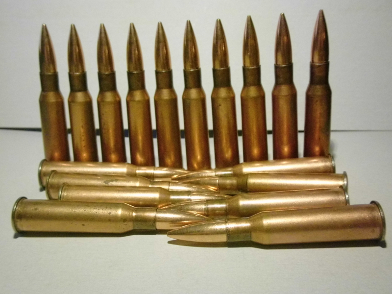 Hier bieten Sie auf 18 Dekopatronen im Kaliber 7,62x54R russisch Nagant. Es sind mehr Patronen vorhanden, beri Bedarf, schreiben sie mich einfach an. Nach dem 2. Weltkrieg hatten viele Ostblockstaaten dieses Kaliber als Standartkaliber. Bei den angebotenen Patronen handelt es sich original militärische verkupferte Stahlhülsen. Die Dekopatronen enthalten keine erlaubnispflichtigen Stoffe. Die Patronen können als EX Patronen verwendet werden. Die Zündhütchen sind abgeschlagen und deshalb können diese Patronen von jederman ohne Berechtigung erworben werden. Bitte Beachten Sie meine anderen Auktionen, oder fordern Sie meine Liste an. Der Versand erfolgt auf eigene Gefahr oder per Einschreiben(Mehrkosten 2,35 Euro).