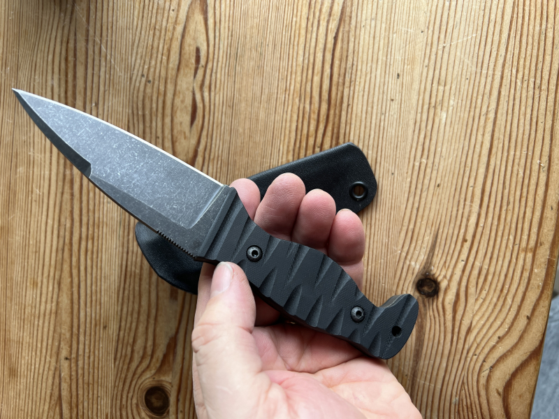 Griff aus G10 verschraub. Klingenfinish Casewell und stonewash.