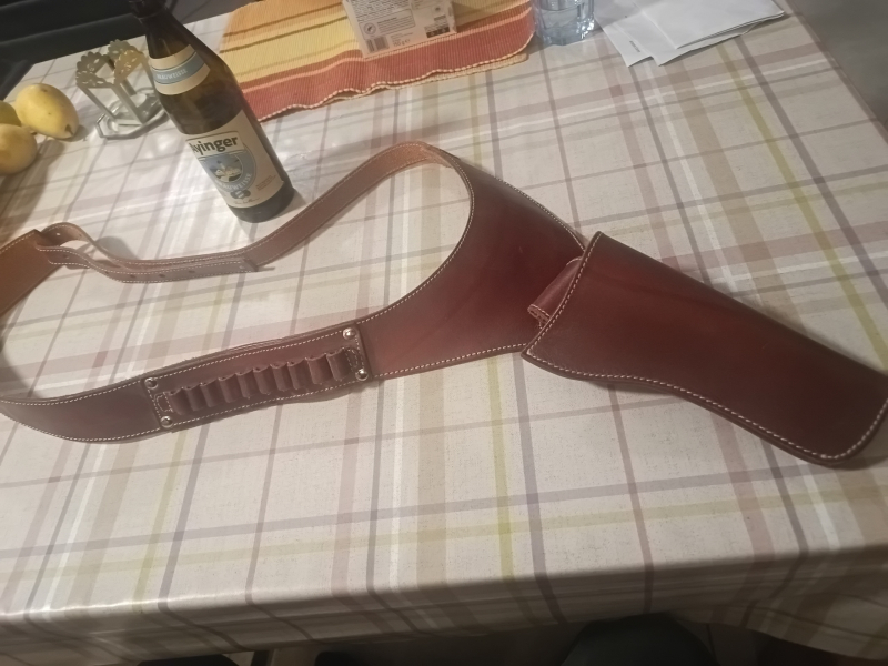 Verkaufe hier ein neuwertiges Schulterholster aus dickem Leder. Das Holster ist in der Größe verstellbar. Mit 10 Patronenschlaufen. Habe keinn DA Revolver mehr. Privatverkauf, keine Garantie, keine Gewährleistung, keine Rücknahme.