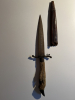 Zubehör: Inklusive der originalen Lederscheide (Altersspuren vorhanden, Naht an der Spitze offen).