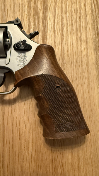 Angeboten werden die Griffschalen Target Rhomlas mit Fingerrillen von Karl Nill. Die Griffschalen passen für Revolver von Smith & Wesson mit K/L-Frame und Round Butt. Sie befinden sich in einem guten gebrauchten Zustand mit leichten Nutzungsspuren, wie auf den beiden letzten Bildern zu sehen. Diese sind im montierten Zustand aber kaum bis gar nicht sichtbar.