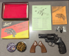 Der Luger 90 Revolver fasst 6 Schuss 9mm Knall / Gas. Baujahr 1993 (KD). Er wurde von der Fa. Röhm in Deutschland hergestellt und ist bis auf die Trommel baugleich mit dem Röhm RG69. Im Gegensatz zu neueren Revolvern hat dieser noch eine sehr geringe Laufsperre (siehe Bild 4). Der Revolver ist in absolutem Bestzustand inkl. Abschussbecher, Originalverpackung, Anleitung und 50 Schuss 9mm Knall. Ich weiß nicht, ob überhaupt jemals damit geschossen wurde, wenn dann nur sehr wenig. Montiert sind die passenden schwarzen Combat-Griffschalen und die äußeren 5 Schrauben wurden aus optischen Gründen gegen Edelstahl Inbusschrauben getauscht (die originalen Griffschalen und Schrauben sind selbstverständlich auch dabei und können jederzeit zurückgetauscht werden).