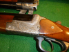 Bockflintenläufe 71 cm, mit Ejektor, alle Läufe spiegelblank, fachmännig verleimter Bruch an der rechten Seite des Pistolengriffs