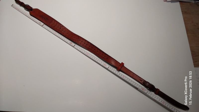 Zu Verkauf steht, aus Nachlass: Anschütz-Gewehr-Riemen, gebraucht, aber im guten Zustand, Leder weder brüchig, noch gebrochen oder gerissen, max. Länge 1m, siehe Bilder