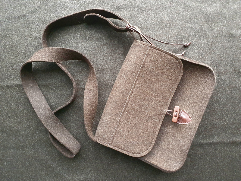 Zum Verkauf steht eine Umhängetasche aus braunem Filz von der Firma Hubertus Loden im neuwertigen Zustand.
