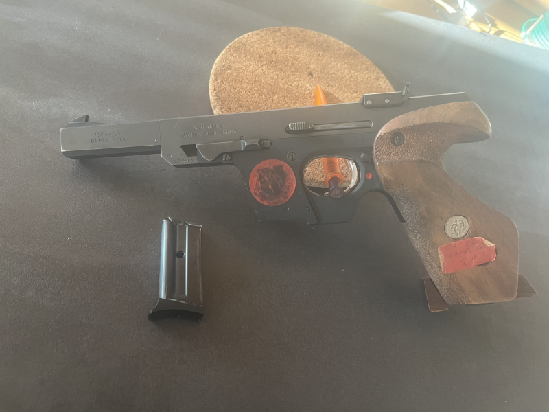 ich biete eine Sportpistole der renommierten Firma Walther (Carl Walther) im Modell GSP, Kaliber .22 l.r., zum Verkauf an. Im Angebot ist ebenfalls ein Magazin enthalten.