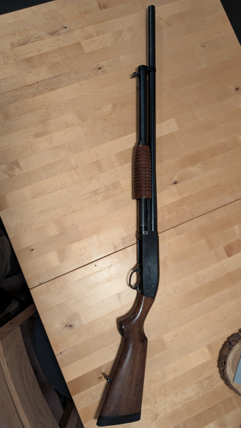 Armscor Vorderschaft-Repetierflinte/Pumpgun im Kaliber 12/70. Das Röhrenmagazin fast 7 Patronen.