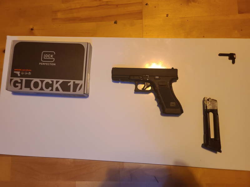Sie erhalten eine fast unbenutze Glock 17 Gen. 3 (Modell 5.8361) Co2-Pistole Kaliber 4,5 mm BB Blowback (P18) von UMAREX.
