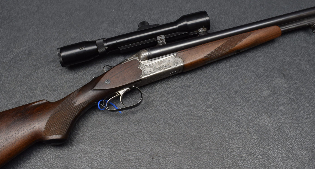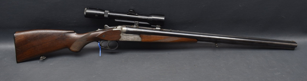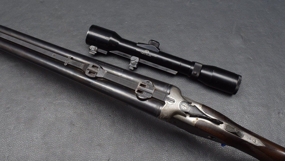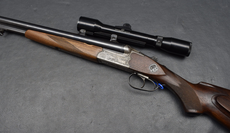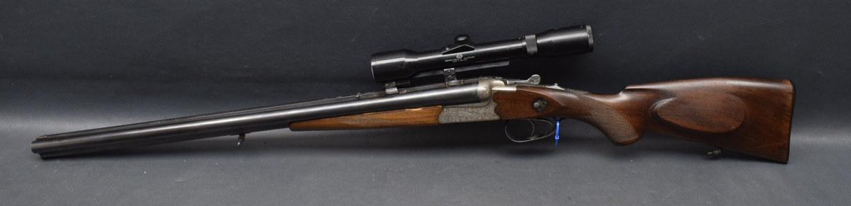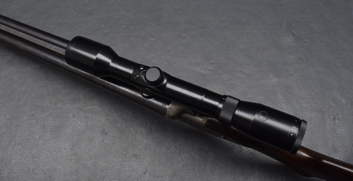 Doppelabzug mit Rückstecher für den Kugellauf. montiert mit Zielfernrohr Suptra 2-6 E.D.S Absehen. 1, mittels SEM Montage. Nußbaumschaft mit mit Deutscher Backe, Riemenbügeln und Schaftkappe.