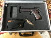 EISELE-Pistolenkoffer für 1 bis 2 Waffen, 45x31(34)x10 cm, sehr gut erhalten, elegant und sehr stabil, Sicherheitsschloss mit 2 Schlüsseln, NEUpreis € 440,-; Verkauf ohne Inhalt - nur als Beispiel. Mit neuer, individuell angepasster Schaumgummieinlage für die eigene Waffe perfekt! Auf der Seite des Koffers Vorrichtung um mit einem Vorhängeschloss eine Ankettung z.B. im Kofferraum vorzunehmen.