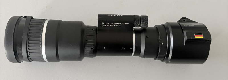 Verkaufe Jahnke DJ-8 1x56 Monochrom. Das Nachtsichtgerät wird mit "leichten Gebrauchsspuren" verkauft, da es im jaglichen Einsatz war und ich kein Risiko eingehen möchte, dass jemand über ein eventuelles Kratzerchen meckert. Den Zustand entnehmt ihr bitte den Bildern. Gerne könnt ihr das Gerät auch nach Absprache persönlich in Augenschein nehmen und testen. Den Neupreis kennt ihr, die Eigenschaften gibt´s auf der Homepage von Jahnke. Wer weitere Fragen hat, bitte einfach melden.