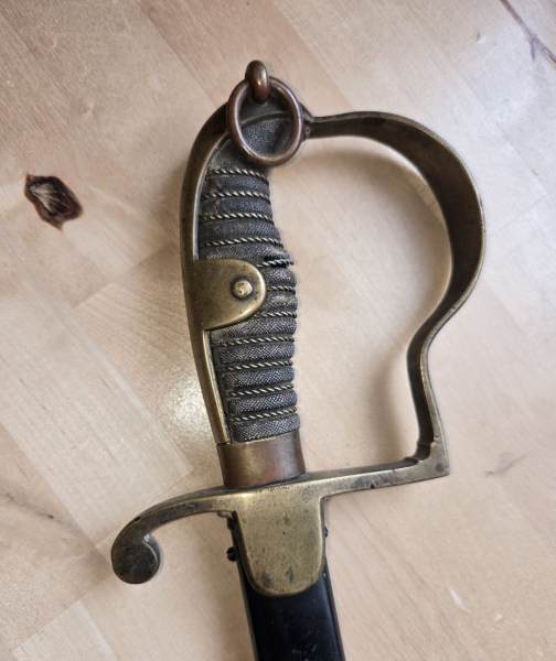 Zum Angebot steht diese kurze Waffe im Stile eines Füselieroffiziersdegen, aber mit seltener Reiteröse (!!).