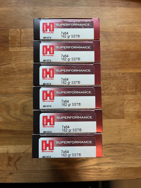 Angeboten werden 120 Schuss Hornady Superformance SST im Kaliber 7x64, 162 gr, aus einem Los. Die Patronen stammen aus meinem Privatbesitz und wurden sachgerecht gelagert. Der Zustand ist einwandfrei. Der Verkauf erfolgt unter Ausschluss jeglicher Gewährleistung, Garantie, Rücknahme und Nachverhandlung. Abgabe nur an Erwerbsberechtigte unter Beachtung der gesetzlichen Bestimmungen. Ein entsprechender Nachweis ist erforderlich und vorzulegen. Versand erfolgt ausschließlich durch Overnite- Waffen- und Munitionsversand. Die o.a. Versandkosten sind geschätzt, es werden die tatsächlichen Versandkosten abgerechnet. Wenn Sie mit den vorgenannten Bedingungen nicht einverstanden sind, bieten Sie bitte nicht.