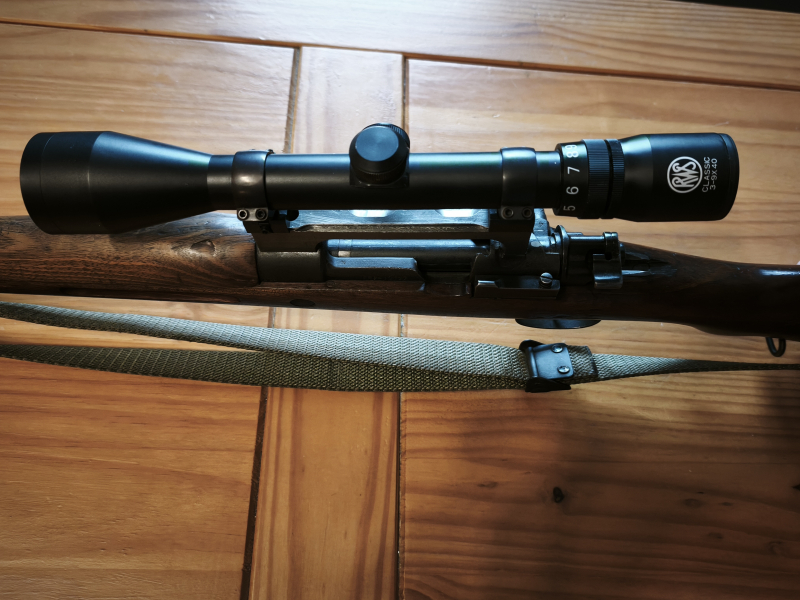 Spanischer Polizeikarabiner FR8, Kaliber 308 Winchester, abgeändert zum Einzellader (kann zurück gebaut werden). Glas von RWS, 3-9x40, Das Gewehr hat Gebrauchsspuren.