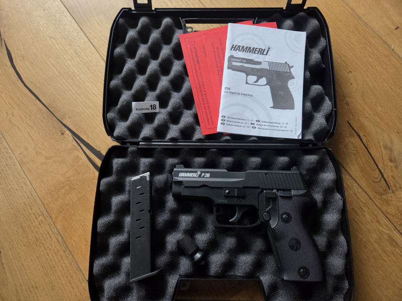 Hier nochmal ein schönes Stück aus meiner Sammlung, eine neuwertige Hämmerli P26 black 9mm P.A.K PTB 775. Ein qualitativer Nachbau der bekannten Polizei Pistole und meines Wissens nach, baugleich mit der Geco P225. Wird leider nicht mehr hergestellt und nur noch selten zu bekommen, besonders in einen augenscheinlich unbenutzen Zustand. Mit dabei die OVP, Magazin. Abschussbecher, Putzbürste und alle Anleitungen. Die Bilder sind Teil der Beschreibung. Ich versende nach Zahlungseingang und Übersendung eines gültigen Altersnachweis versichert mit DHL. Bitte beachten Sie auch meine allgemeinen Informationen.