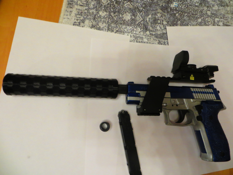 Verkaufe eine Pistole Sig-Sauer P 226 CO2 Diabolo. Doppelmagazin 2x8 Schuß, mit Red DOT und Moderator (Schalldäpferatrappe).