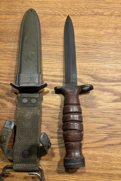 Ich verkaufe hier aus meinem Bestand ein gebrauchtes Bajonet. Die Klingenlänge ist 17cm , Gesamtlänge 29 cm . Gestempelt U.S.M8 - B.M. CO. Der Zustand ist den Bildern zu entnehmen. Geliefert wird, wie auf den Fotos zu sehen.