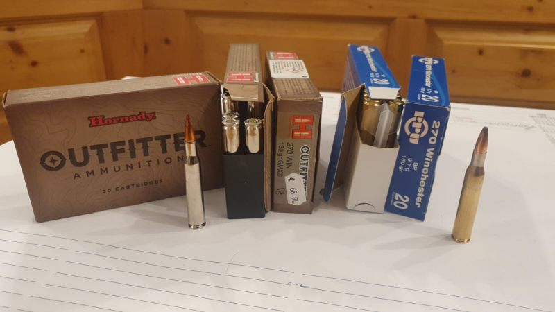 Angeboten werden Hornady Outfitter, 57 Patronen, 130 grs / 8,4 gr mit bleifreiem GMX Geschoss (gleiches Los). 3 Schuss wurden zum Einschießen verwendet (vgl. Auktion Santa Barbara Repetierbüchse)