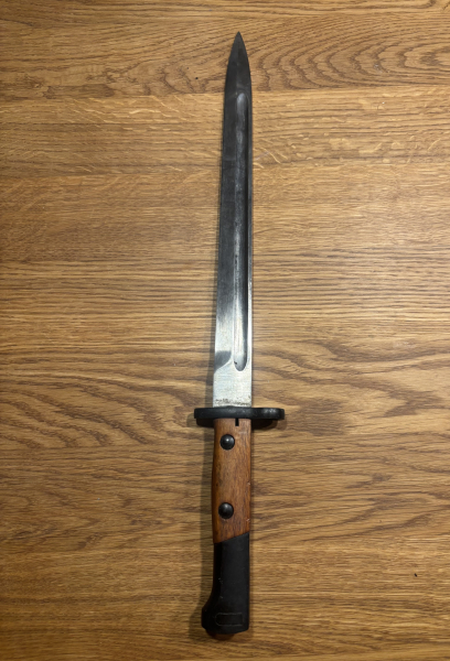 Ich verkaufe hier aus meinem Bestand / Sammlung ein gebrauchtes Bajonet. Die Klingenlänge ist 30 cm , Gesamtlänge 43 cm . Ohne Stempel, ohne Scheide. Der Zustand ist den Bildern zu entnehmen. Geliefert wird, wie auf den Fotos zu sehen.