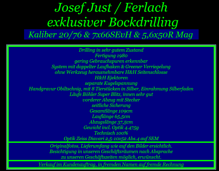 Josef Just / Ferlach exklusiver Bockdrilling Kaliber 20/76 & 7x66SEvH & 5,6x50R Mag