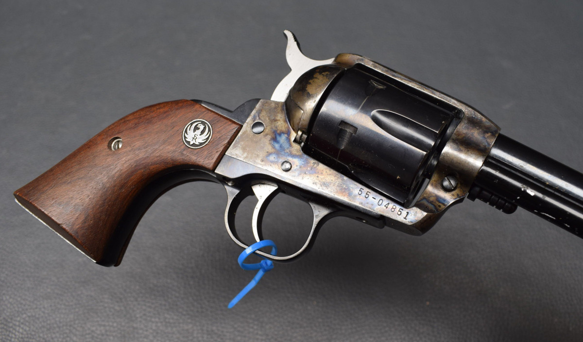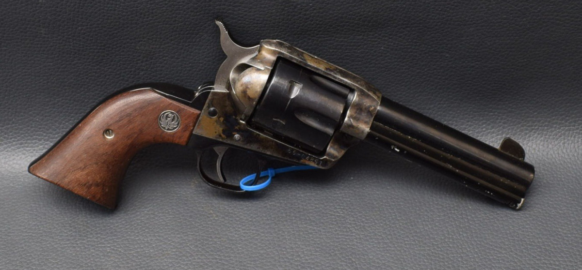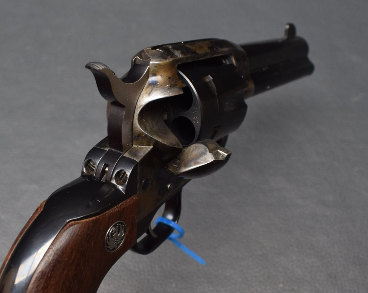 Holzgriffschalen mit Ruger Logo. Lauf und Trommelbohrungen sehr gut, Oberfläche 96%