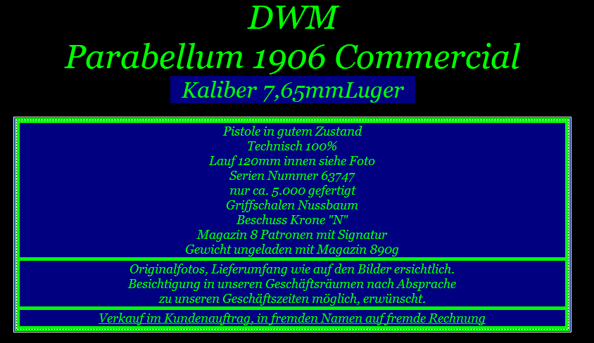 DWM Parabellum 1906 Commercial Kaliber 7,65mmLuger