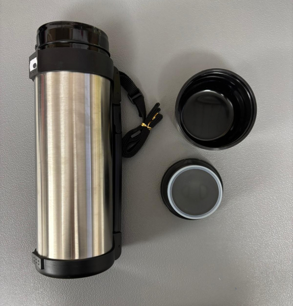 mit abschraubbaren Deckel, welcher auch als Becher genutzt werden kann