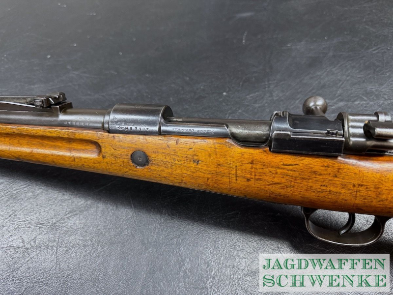 Seltenes Mauser Exportmodell, man beachte den unter dem Kolben angebrachten Riemenbügel, den geraden Kammerstengel,