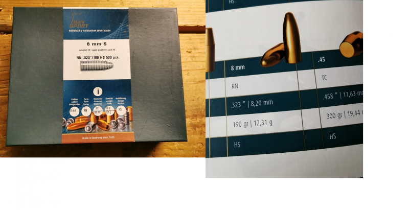 Aus Nachlass 1 Schachtel = 500 Stück H&N High Speed Langwaffengeschosse im Büchsenkaliber .323 / 8mm RN mit 190 grain